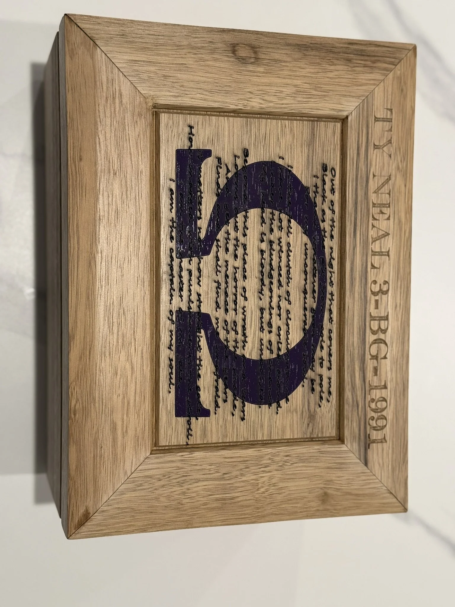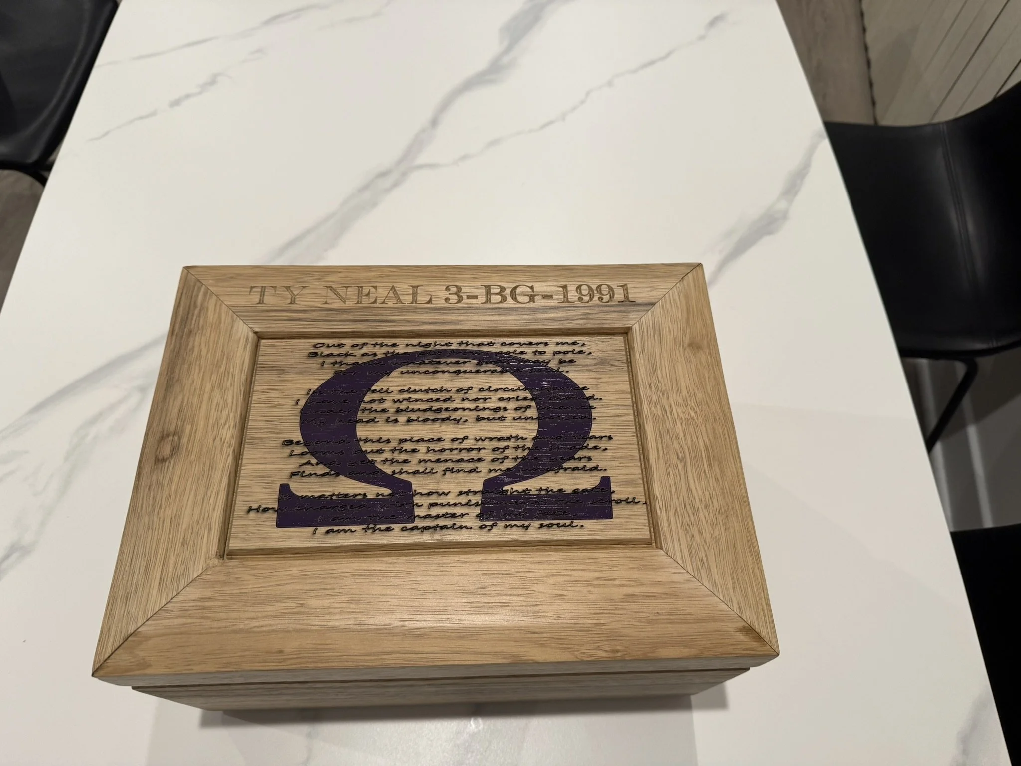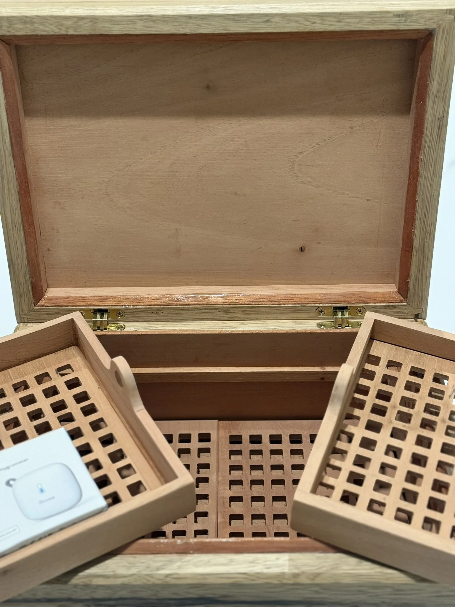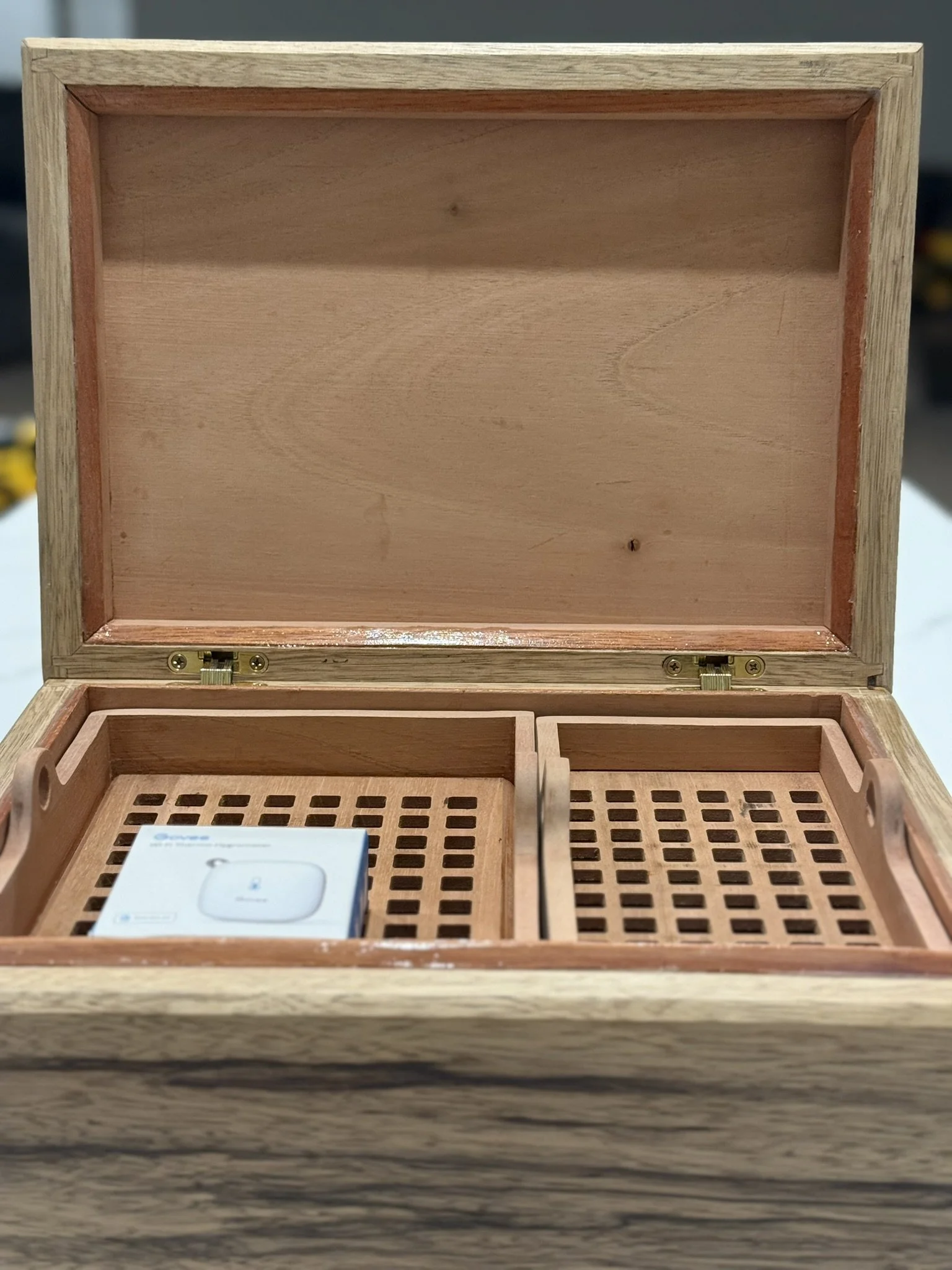 Handcrafted from exotic black limba, this custom cigar humidor is as striking as it is functional. The interior is lined with aromatic Spanish cedar, prized for its ability to maintain optimal humidity and enhance cigar aging. Designed for both beauty and performance, it offers a secure, climate‑controlled space to preserve your collection while showcasing the natural elegance of fine hardwood craftsmanship. For a truly personal touch, each humidor can be custom‑engraved to commemorate a special occasion or display your unique style.